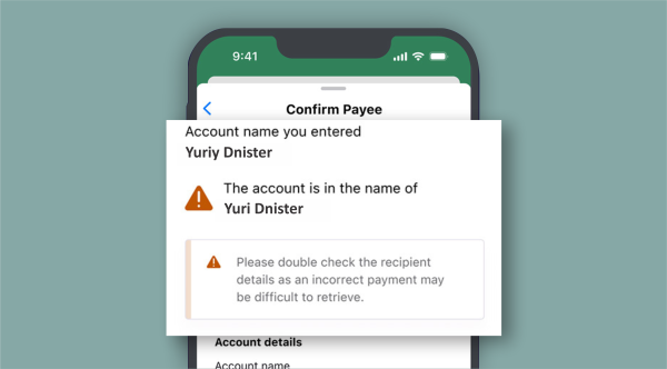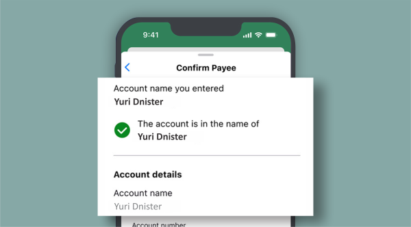 Confirmation of Payee is an industry-wide service designed to help protect you from scams or mistakenly sending money to the wrong account.