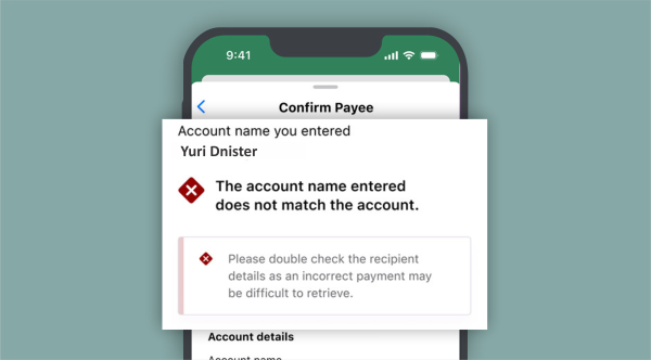 - The account details you entered do not match the details held by the payee’s financial institution.