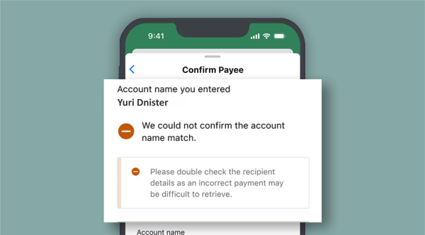 Match outcomes give you important information to decide what to do next. If you think you’ve entered the account details incorrectly, you can confirm them with the intended recipient before making the payment. Or if something doesn’t seem right, you can choose to cancel the payment.